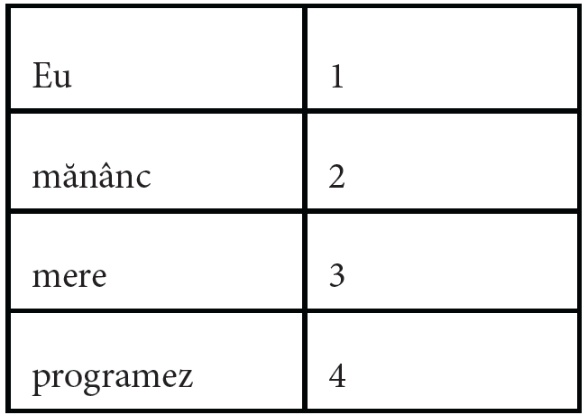 Astfel putem obține următoarele reprezentări ale celor două segmente de text: