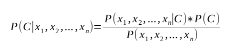 Astfel aplicat la problema noastră, probabilitatea ca un document să aparțină unei categorii C ținând cont că are în componența vectorul de cuvinte X=(x1, x2, …, xn) este următoarea: