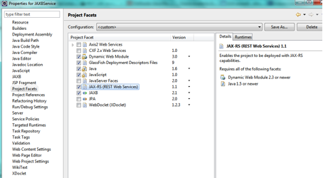 JAX-RS suportă crearea automată a fișierelor XML și JSON prin JAXB. Pentru aceasta într-un Dynamic Web Project facem următoarele setări: