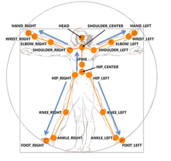 Apoi, cu ajutorul acestei hărți, se identifică cele 20 de puncte ce alcătuiesc scheletul care este folosit pentru reproducerea mișcărilor corpului.