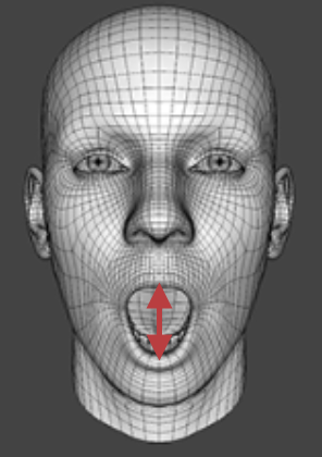 După mai multe încercări, am reușit într-un final să concepem un algoritm optim și neașteptat de eficient. Stabilind o limită pentru suprafața ce trebuia procesată, mai exact doar pentru zona gurii, și ajutându-ne de harta de adâncime, în momentul în care pacientul scotea limba afară din gură, reușeam să izolăm vârful limbii și să ne folosim de el pentru a detecta orice mișcare al acestuia. Izolarea vârfului limbii este posibilă datorită proprietății hărții de adâncime, care este creată în funcție de distanță în milimetri a obiectelor față de Kinect. În momentul în care limba este scoasă, vârful acesteia este cel mai apropiat punct față de senzor și de aceea îl putem considera în algoritm a fi limba. (Vezi imaginea de mai jos.)
