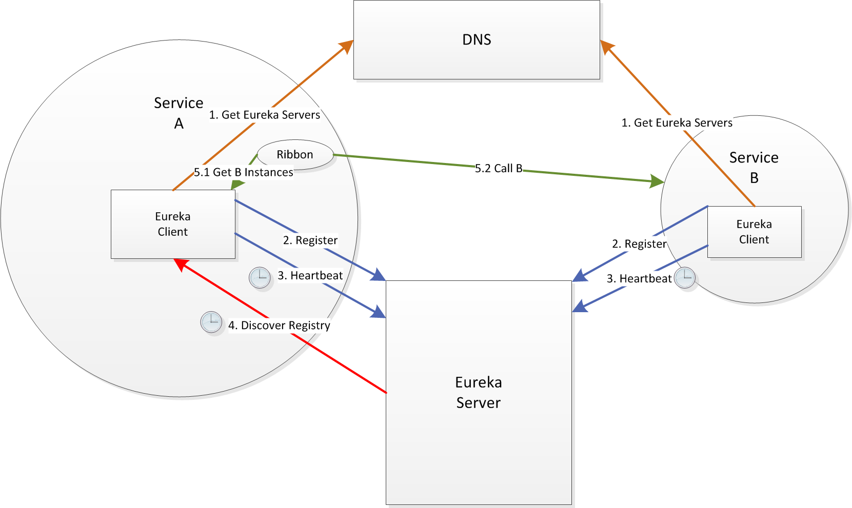 Netflix folosește DNS pentru a gestiona lista de referințe Eureka Server într-un mod dinamic. Clienții Eureka nu au nevoie de repornire pentru a obține noile configurări, ci le obțin printr-o nouă interogare DNS.