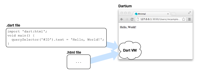 O aplicație Dart de tip command-line este un program independent care va fi rulat cu ajutorul mașinei virtuale Dart VM într-o fereastră de consolă. Aplicația Dart scrisă pentru web va fi găzduită în cadrul unui document HTML și rulată fie din browser-ul Dartium, având Dart VM integrat, fie din oricare alt browser modern după compilarea codului in JavaScript - numit în prezent și limbajul de asamblare a browser-elor.