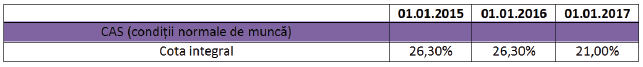 Astfel, pentru anul fiscal 2015, câștigul salarial mediu brut este de 2.415 lei, în urcare de la 2.298 lei, cât a fost în 2014. În aceste condiții, baza de calcul pentru C.A.S. nu poate fi mai mică de 845 lei, dar nici mai mare de12.075 lei. Aplicând cota de CAS de 26,3% asupra acestor valori, PFA va plăti la pensie minimum 222 lei (35% x 2.415 lei x 26,3%) și maximum 3.176 lei (5 x 2.415 lei x 26,3%) pe lună.