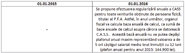 De asemenea, pentru a nu exista probleme legale, este important ca P.F.A. să nu fie dependentă de un beneficiar. Anul 2016 pregătește o listă de modificări fiscale atât favorabile cât și nefavorabile. Recomandarea noastră este să se țintă cont de acestea în planificarea financiară pentru luarea celor mai bune decizii.