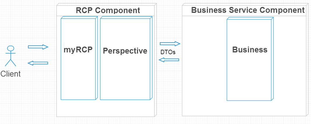 Vom separa funcționalitățile de business (manipularea obiectelor) de funcționalitățile de afișare. Prin aceasta vom crea două componente: componenta RCP și componenta de business. Componenta RCP va conține orice topic legat de elementele vizuale, managementul acțiuniilor și orice altă interacțiune cu utilizatorul, în timp ce componenta de business se va ocupa de toate topicurile legate de managementul acțiunilor și funcțiilor de business.