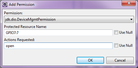[CRITICAL] [SECURITY] iso=2:Permission check failed: jdk.dio.DeviceMgmtPermission "GPIO7:7" "open"