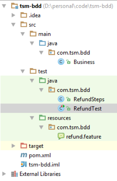 În final, codul din definițiile pașilor va apela codul de business al aplicației.