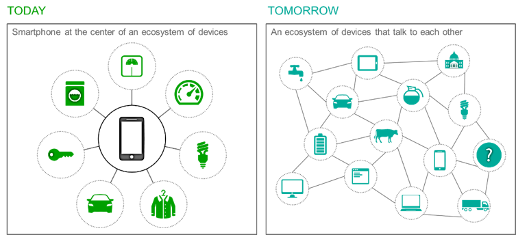 Producătorii: Adam rămâne apropiat de clienții săi. El produce Nest și oferă actualizări gratuite clienților săi și le promite să le păstreze datele personale în siguranță. El realizează că Nest nu este încă suficient de inteligent pentru a comunica local cu toate dispozitivele posibile, așa că oferă API-uri cloud pentru a integra restul dispozitivelor utilizatorului. În afara Smartphone-urilor, majoritatea dispozitivelor nu sunt încă inteligente, iar producătorii lor oferă pentru a se evidenția servicii cloud cu valoare adăugată pe lângă produsele lor. Philips Hue, Nest sunt bune exemple în acest sens. Majoritatea acestor dispozitive sunt construite pe ZigBee open source stack, integrează Z-Wave chip-ul brevetat sau expun o interfață BLE. Este ușor de înțeles cum interconectivitatea are de suferit. Pentru a face bani, Adam trebuie să născocească niște opțiuni inteligente, de la freemium, achiziționarea in-app, bazată pe subscripție, plată per utilizare până la modele premium.