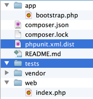 A venit momentul să pregătim o mică strategie pentru aranjarea fișierelor proiectului nostru. Este considerată o bună practică păstrarea fișierelor accesibile public într-un director separat, așadar noi vom folosi web/ în acest scop.