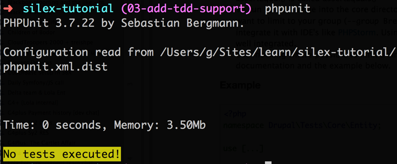 Este important să avem o metodă de a scrie teste pentru aplicația noastră. Standardul de-facto în lumea PHP este PHPUnit, chiar și Drupal8 a migrat la acesta de la SimpleTest pe care în folosea anterior.