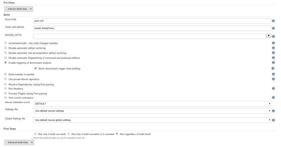 Indiferent de scopul unui job, o configurare este absolut necesară, cea de „Build”. În acest pas se setează acțiunea pe care trebuie să o execute acest job.