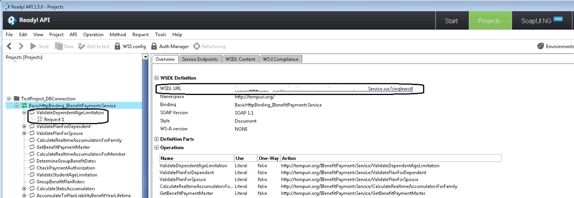 Când se creează un proiect SOAP UI, acestuia I se ataşează unul sau mai multe contracte. Când se încarcă contractul, se vor încărca toate metodele expuse de pe acel serviciu şi se pot crea request-uri default pentru fiecare metodă în parte.