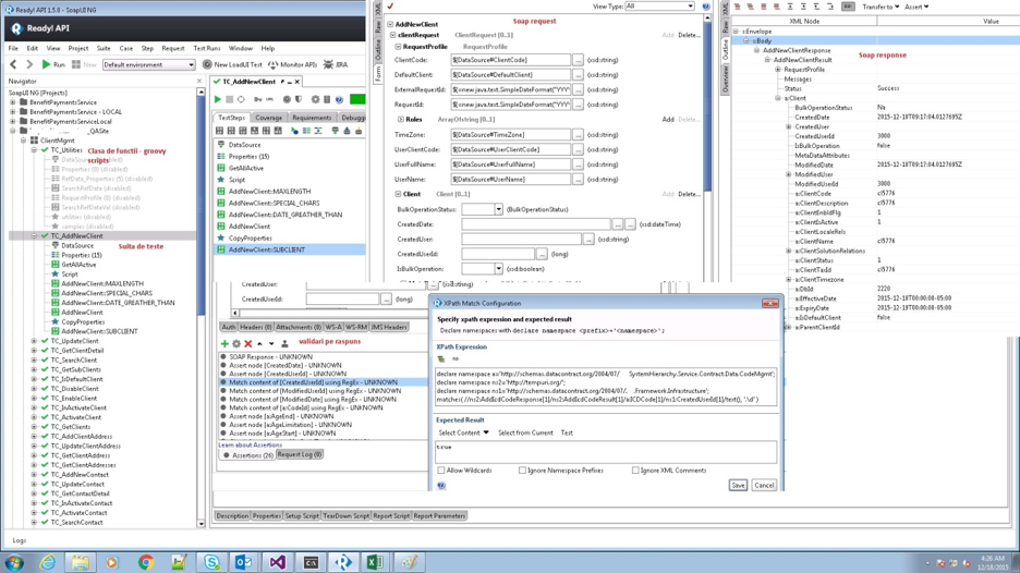 În cadrul firmei folosim intens SOAP UI, versiunea Ready! API – SOAP UI NG, pentru testarea funcţională a servicilor web.