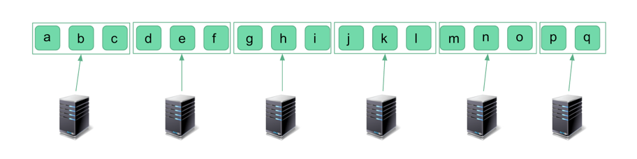 Pornind de la imaginea de mai sus, putem să ne imaginăm RDD drept o colecţie de caractere (pentru Java), partiţionate şi distribuite pe mai multe maşini (calculatoare). Partiţiile sunt unităţile de distribuţie pentru RDD, similare blocurilor de date pentru HDFS.