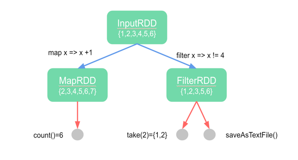 Un exemplu de acţiune este count(), care returnează numărul de elemente dintr-un RDD.