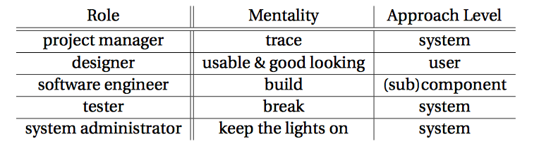 Este important să înțelegem mentalitatea intrinsecă a fiecărui membru al echipei, deoarece aduce într-o lumină specială felul în care ei abordează procesul de construcție software. Ne preocupă acest aspect datorită legii lui Conway care spune că "orice organizație care proiectează un sistem va produce inevitabil unul a cărui structură este o copie a structurii de comunicare din interiorul acelei organizații".