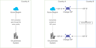Tot conţinutul trimis dintr-o regiune Azure la un sistem local va trece prin furnizorii locali ISP (Internet Service Providers/furnizori de servicii Internet) ai ţărilor respective. Conţinutul nu va părăsi acea ţară specifică atâta timp cât sistemul local este ȋn aceeași ţară ca regiunea Azure.