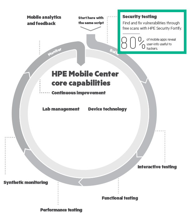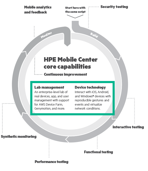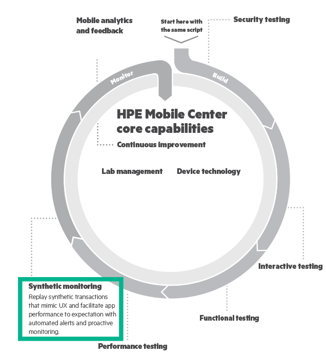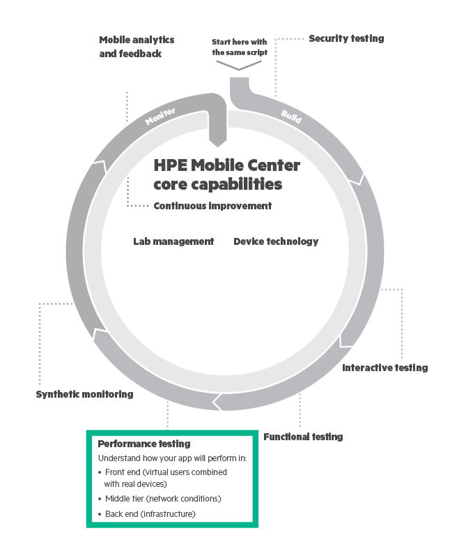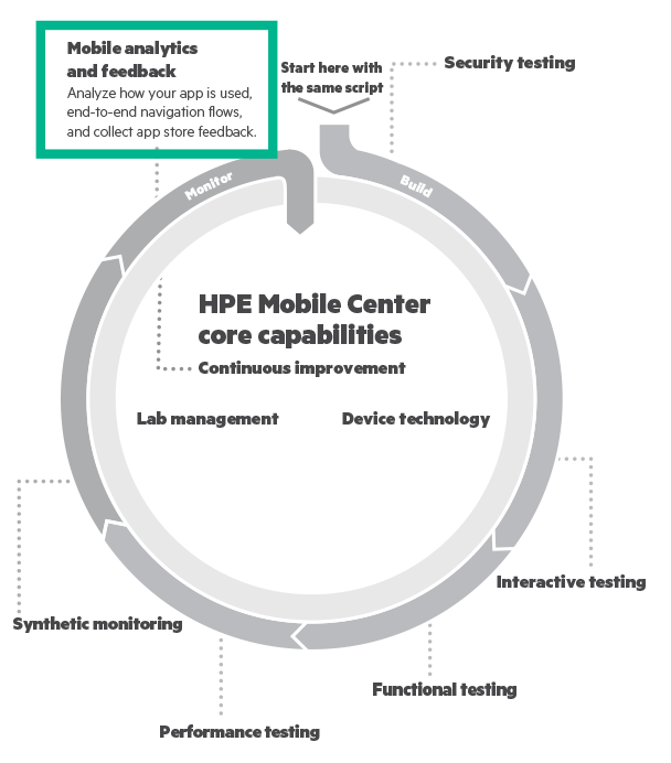 HPE Mobile Center software is the single gateway that enables you to redefine the mobile experience by delivering a predictable and repeatable mechanism for testing, monitoring, and improving your mobile apps throughout its lifecycle.