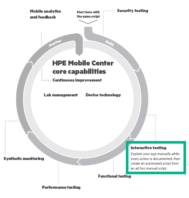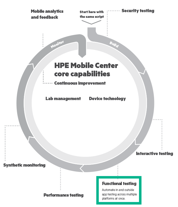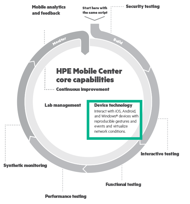 HPE Mobile Center enables mobile testing teams to automate the testing of various aspects of the user experience. The solution is built to support frequent intensive regression and functional testing supporting agile and continuous development processes.