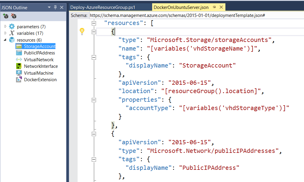 Template-ul JSON poate fi vizualizat aici. Fișierele JSON pot ajunge foarte complexe și deci supuse erorilor, tocmai de aceea există o unealta specializată în editarea lor din Visual Studio: