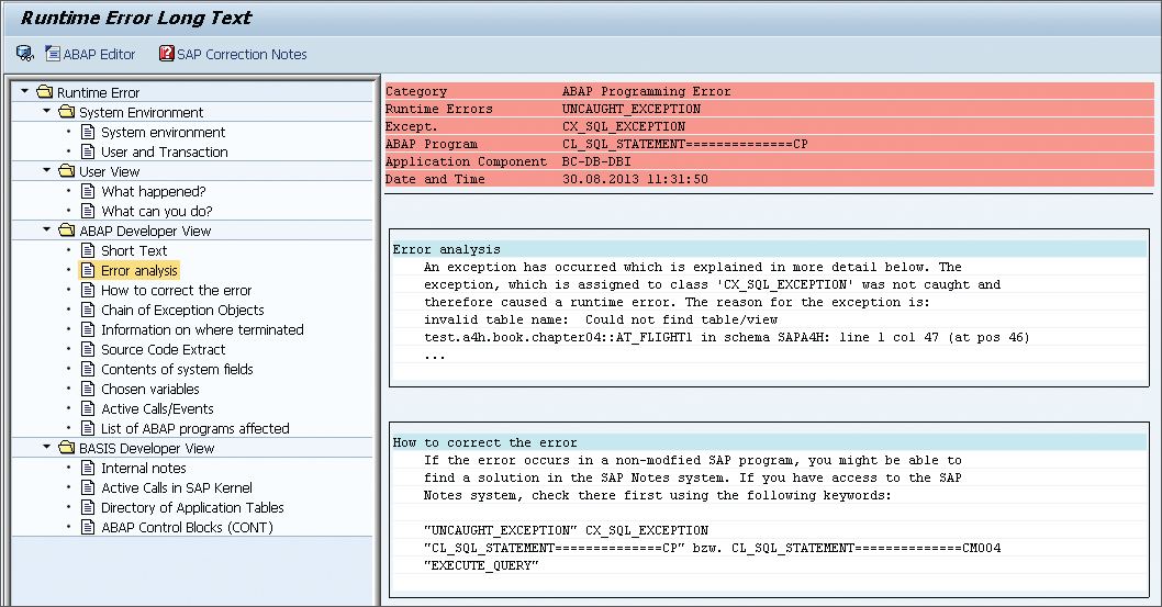 Figura 1. Excepția CX_SQL_EXCEPTION