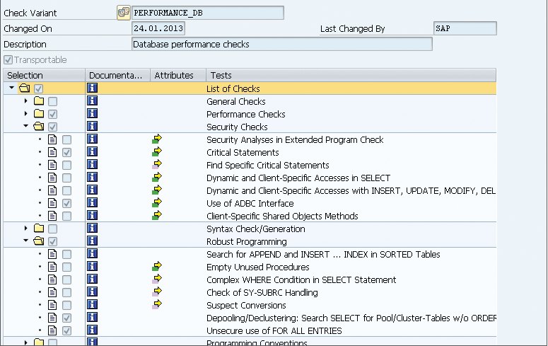 Acest instrument ne ajută să identificăm acele părți dintr-un program cu potențial de îmbunătățire. Dispune de o serie de verificări care pot fi făcute. Aceste verificări pot fi grupate în variante. În această secțiune sunt prezentate acele variante create pentru migrarea sau optimizarea pe SAP HANA. Ele au legătură, în principal, cu programarea robustă, securitate și performanță.