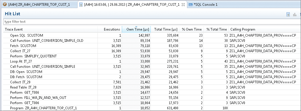 Instrumentul de optimizare a performanțelor SQL, sau SQL Perfomance Tuning Worklist, tranzacția SWLT, combină informațiile din analiza statică a codului , informații generate de ABAP Test Cockpit și informații generate de SQL Monitor. Acest lucru ne permite să identificăm repede locul unde trebuie intervenit pentru a optimiza o aplicație HANA.