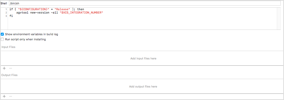 Următorul scenariu (script) este adăugat la faza de creare a pachetului de instalare și este adăugat în ținta curentă din Xcode.