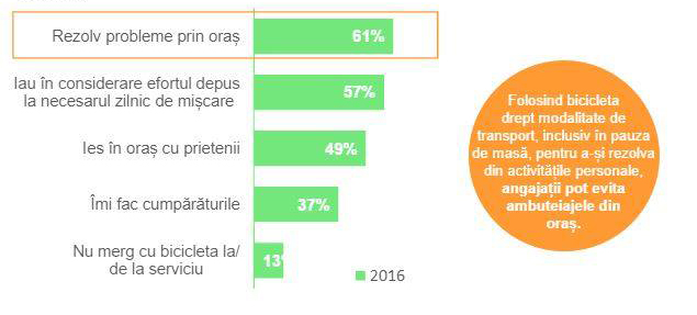 Implicând mersul pe bicicletă la/de la serviciu, clujenii efectuează și alte activități pe bicicletă.