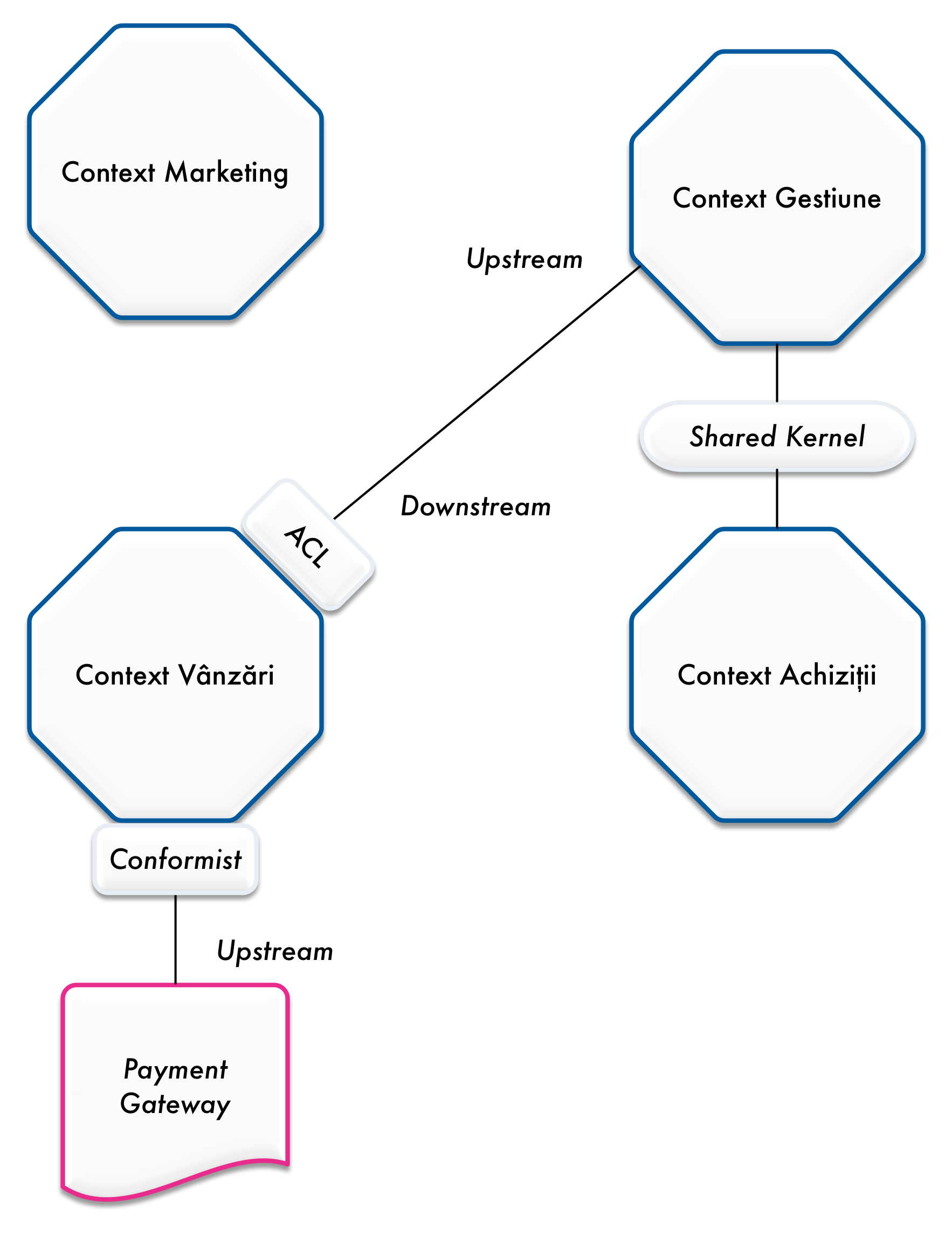 Pot exista mai multe tipuri de relații între contexte și din acest punct de vedere DDD definește câteva tipare în abordarea acestor relații: