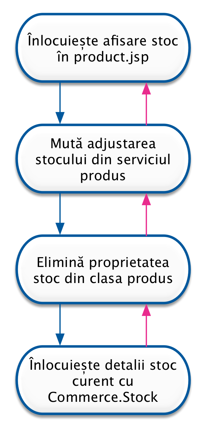 1. Stabilirea unui obiectiv. Ne gândim la ce anume dorim să obținem, un punct de pornire și un punct final sau criteriu de succes. În exemplul nostru bazat pe monolit ar putea fi înlocuirea unor câmpuri folosite din supermodelul produsului cu modelul din contextul balon.