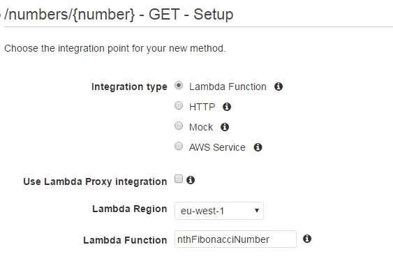 Ultimul pas în dezvoltarea aplicației propuse este dat de crearea unui endpoint REST care să execute funcția definită anterior. Acest lucru se realizează cu ajutorul serviciului API Gateway. Definirea unui nou endpoint poate fi realizată tot prin intermediul consolei AWS. Din interfața serviciului API Gateway va fi creat mai întâi un nou API, iar în cadrul acestei componente se definește endpointul GET "/numbers/{number}", unde {number} reprezintă un placeholder pentru numărul furnizat de clientul endpointului. Acesta va fi furnizat mai departe ca parametru pentru funcția Lambda anterior definită.