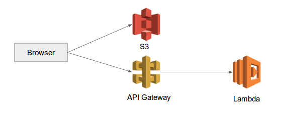Imaginea de mai jos surprinde structura generală a aplicației și interacțiunea dintre serviciile Amazon utilizate. Ca idee generală, accesând dintr-un browser URL-ul aplicației noastre se va încărca o pagină HTML care e stocată de serviciul S3. Din pagina HTML se realizează apeluri la un anumit endpoint REST definit cu ajutorul API Gateway. Acesta este configurat ca atunci când primește un request să apeleze mai departe serviciul Lambda pentru a calcula numărul căutat din șirul lui Fibonacci. Rezultatul este returnat pe același traseu pană la browser și este afișat utilizatorului. Parcurgând rândurile următoare veți avea o imagine mai clară asupra interacțiunii dintre serviciile Amazon descrise în această imagine.