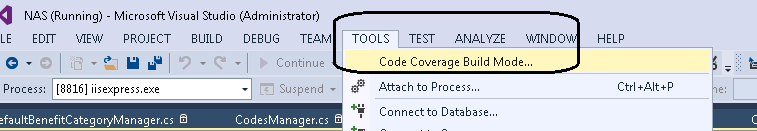 5.Când Squish Coco este instalat pe o anumită maşină, the Add on pentru Visual Studio este de asemenea instalat. În Visual Studio, Tools, se regăseşte opţiunea pentru Code Coverage.
