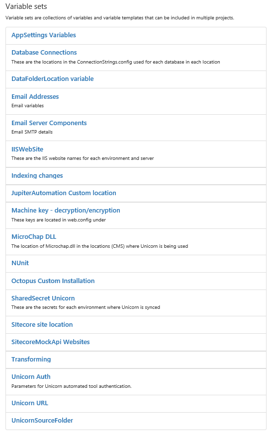 Fiecare proiect în parte are pipeline-ul lui, fiecare cu un pachet diferit din punct de vedere al numelui pentru a le putea identifica mai ușor. Însă, pentru a avea o structură cât mai ușor de urmărit, am optat pentru a partaja variabilele între cele cinci proiecte, obținându-se astfel un număr de seturi de variabile disponibile pentru toate cinci.