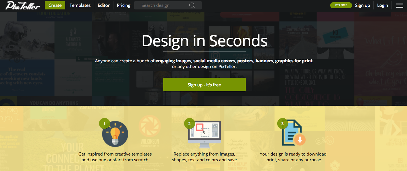 PixTeller este un tool/instrument online care îmbunătățește și simplifică procesul de design de la început și până la sfârșit. Poate fi folosit de către oricine în scop personal sau comercial, chiar dacă nu are cunoștințe tehnice sau de design.