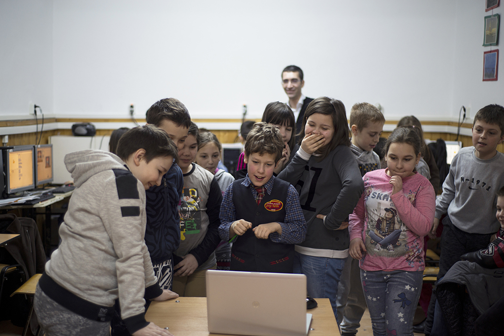 Regăsim încântarea de care vorbește Vasile și la Colegiul Național ,,George Barițiu", unde este voluntar Ciprian Căprioară, Software Engineer în cadrul companiei iQuest. Acolo sunt șase voluntari care sunt primiți în fiecare săptămână de 22 copii. "Am găsit elevii entuziaști și curioși. Au mers mai repede decât ne-am așteptat - în timp ce făceam conturile pentru toți, deja unii se jucau și au înțeles multe din funcționalitățile programului", povestește el.