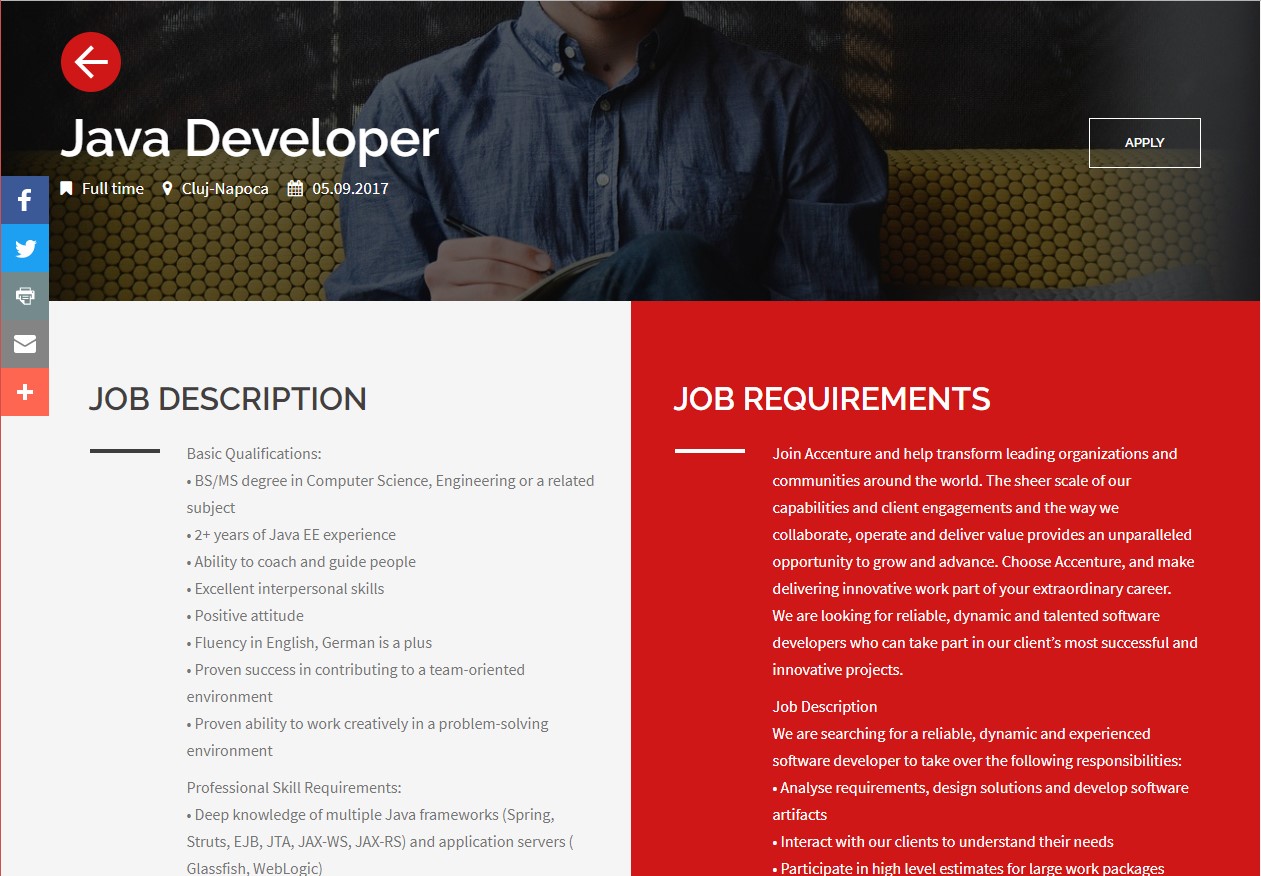 Pentru a aplica la o ofertă de loc de muncă, doar trebuie să apeşi pe butonul APPLY sau APLICĂ, pentru că este configurabil textul de pe buton, apoi te loghezi cu LinkedIN şi ai 99.9% şanse să fi angajat.
