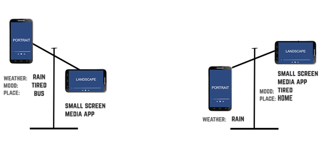 În schema de mai jos este ilustrat modul în care factorii externi influențează utilizatorul în alegerea orientării ecranului.