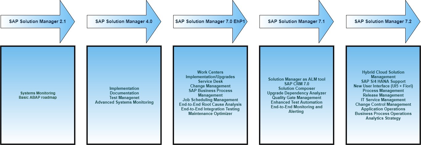 Această platformă a fost introdusă de SAP în 2010 pentru a ajuta clienții să-și monitorizeze landscape-urile și să-și poată crea un traseu pentru ciclul de viață al sistemului ABAP, care la vremea respectivă era disponibil doar pentru tooluri terțe. În 2010, când s-a lansat Solution Manager 2.1 și până la versiunea curentă Solution Manager 7.2, platforma a crescut de la câteva funcții de bază la un produs cu o complexitate ridicată.