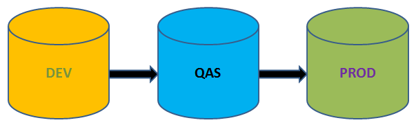 Aceste medii sunt ca un filtru, iar problemele pot fi evitate în producţie. Primul filtru este mediul DEV, unde sunt create aplicaţiile și configuraţiile. Aceste obiecte sunt transportate în mediul QAS pentru testare. În mediul QAS, funcţiile business sunt simulate pentru a găsi erorile existente înainte ca soluţia să meargă în producţie. Bugurile găsite sunt reparate în mediul DEV, iar soluţia ajunge din nou în mediul QAS pentru retestare. Al treilea mediu este producţia (PRD.) PRD este ceea ce ce folosește clientul și soluţia finală de business. Modelul descris ar trebui să permită evitarea marilor probleme din cadrul procesului "Go-Live". Problemele neprevăzute ce vor apărea în ciclul de viaţă a sistemului vor fi rezolvate prin același ciclu.