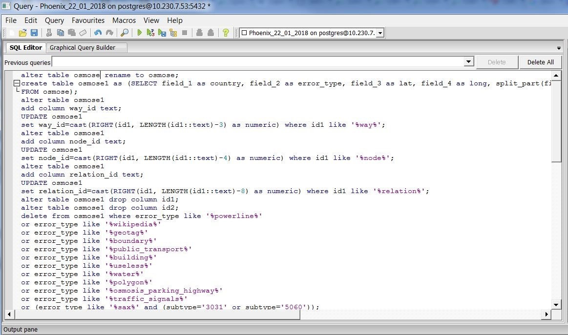 După ce obținem fișierul îl deschidem în QGIS și îl salvăm în format shapefile. Apoi îl importăm în PgAdmin și filtrăm erorile care ne interesează folosind o serie de interogări.