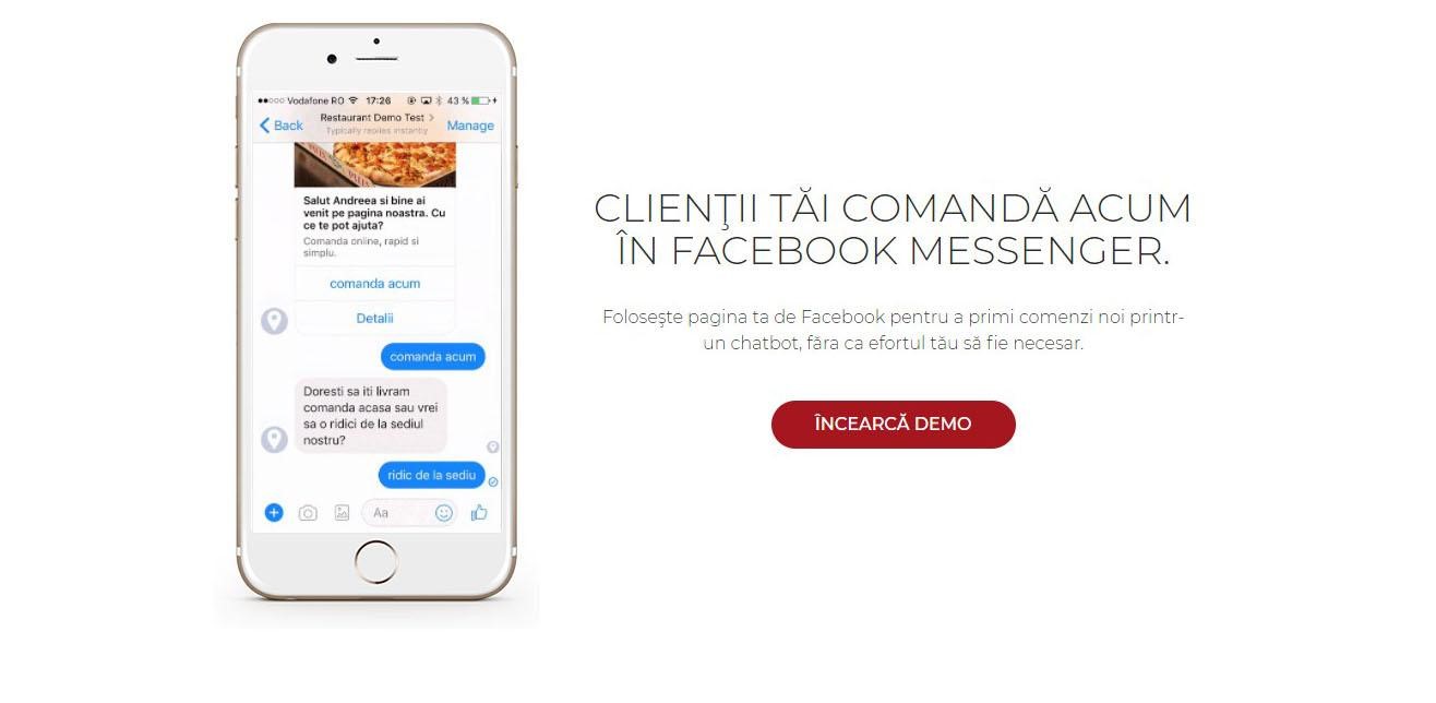 Order+ e un chatbot pentru Facebook, care ajută restaurantele să interacţioneze mai uşor cu clienţii. Aceştia pot comanda rapid, direct de pe Facebook, fiind ajutaţi de bot. Astfel, angajaţii nu mai pierd timp cu preluarea comenzii. Flavius Pop este fondatorul primei agenţii din România, care dezvoltă chatbots pentru Facebook Messenger.