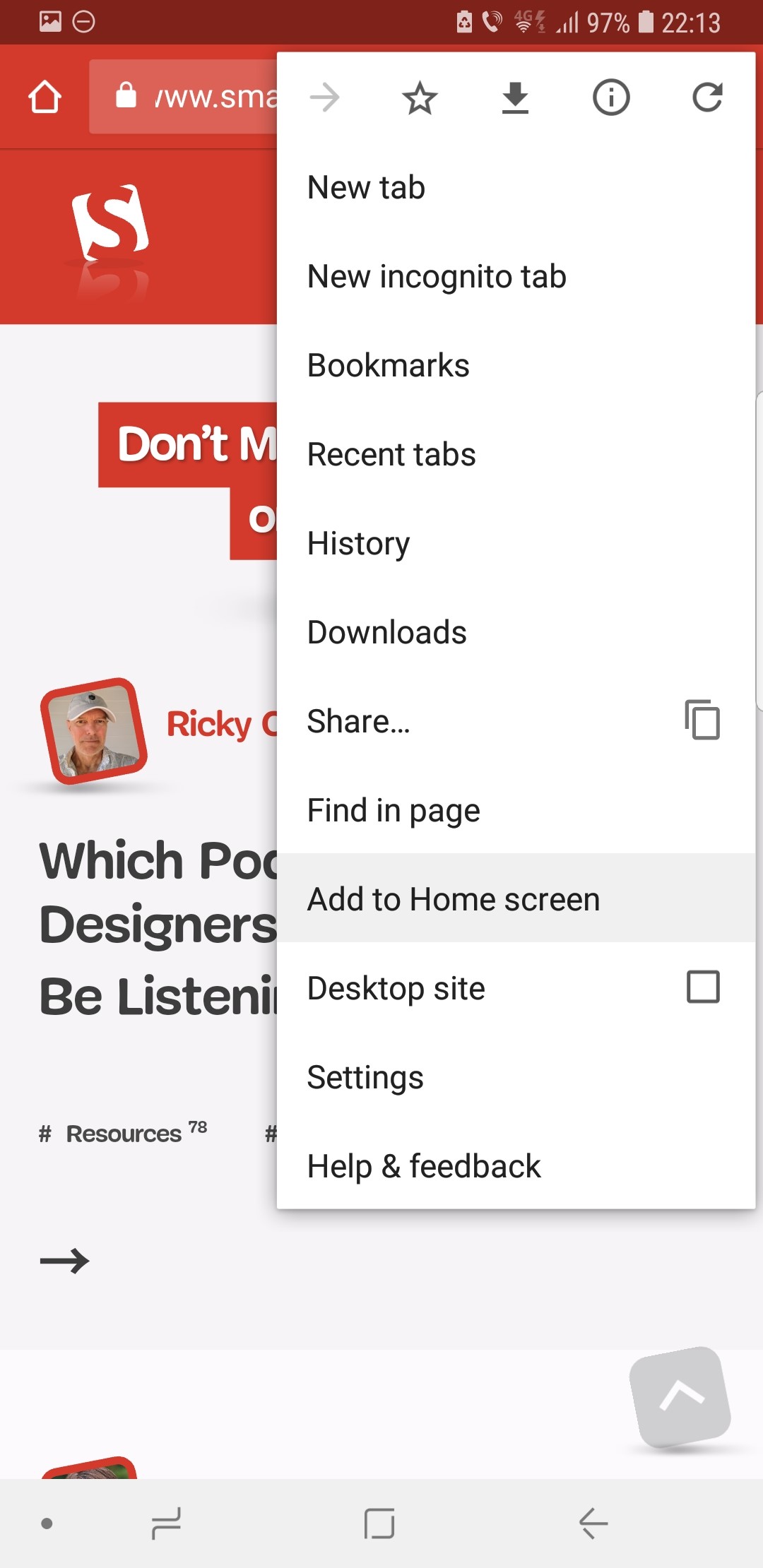 Foarte încântat, decide să încerce și pasul de a salva un shortcut pentru pagina web direct pe telefon. Pagina îndeplinește acțiunea, apoi afișează o confirmare discretă ce nu îl întrerupe pentru a reconfirma.