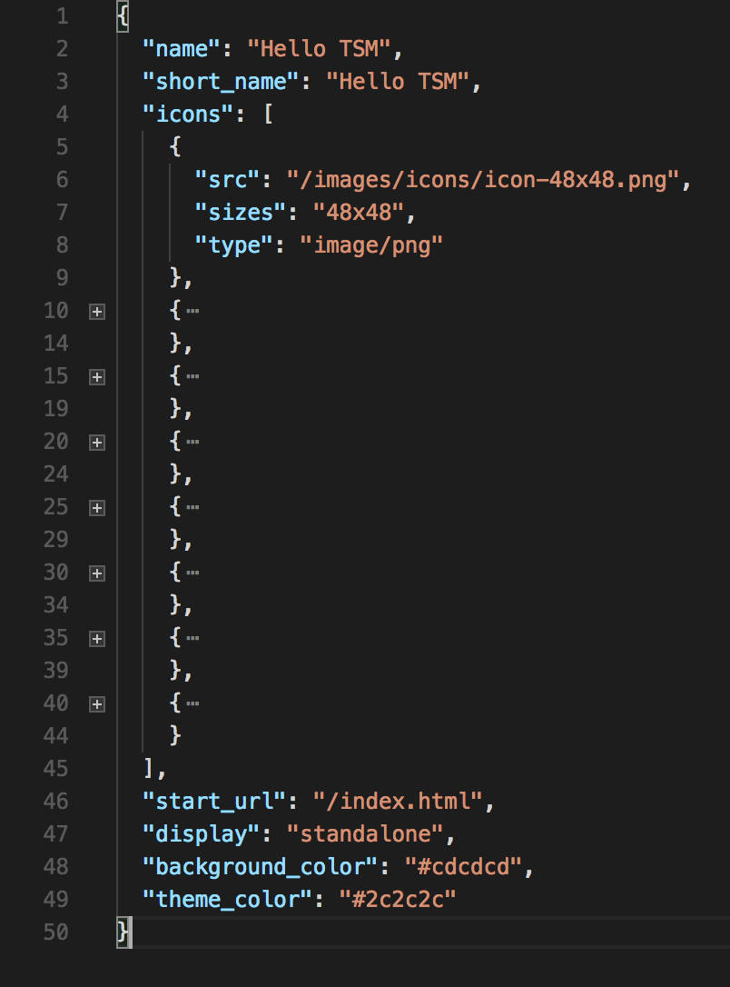 Primul grupează meta data sau date descriptive despre aplicație, pentru ca un dispozitiv (precum un telefon) să o poată recunoaște ca fiind PWA și să înțeleagă cum să o redea ca o aplicație separată.