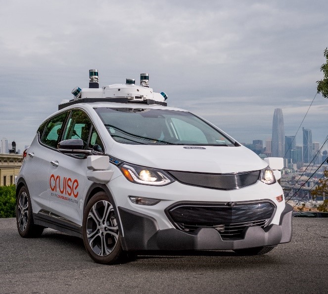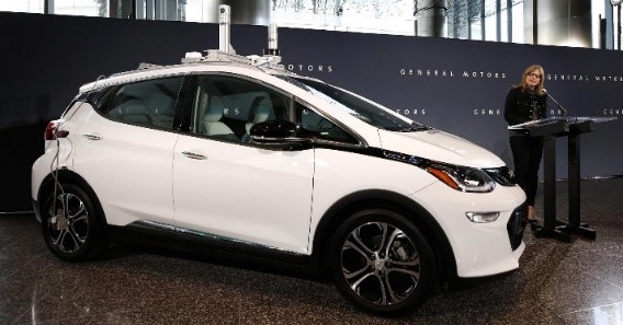 În ianuarie a acestui an, a fost raportat de asemenea faptul că General Motors a depus o petiție de siguranță către Departamentul de Transport, pentru a-i fi permisă dezvoltarea primei sale mașini autonome, una care presupune absența unui volan și a pedalelor. Dacă îi va fi acordată, GM spune că va produce și lansa versiunea fără șofer a lui Chevy Bolt, numită Cruise AV, în 2019. În plus față de petiția privind siguranța, menționată anterior, GM a dezvăluit deja cum va arăta conceptul de nivel 4, descriind-o ca un vehicul care "va funcționa în siguranță pe cont propriu, fără șofer, volan, pedale sau comenzi manuale".