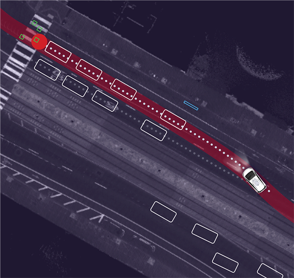 GM chiar a descris o astfel de situație printr-un exemplu dat: " În timp ce vehiculul se pregătește să schimbe benzile pentru a vira la dreapta la o intersecție, un alt vehicul poate tăia agresiv banda de destinație, ceea ce face ca schimbarea benzii de drum sa fie nesigură. Planning ar avea deja un plan alternativ: vehiculul ar putea merge pe direcția străzii curente în loc să-și blocheze banda, în timp ce ar fi așteptat o deschidere pentru a schimba benzile".