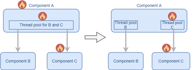 În mod uzual, bulkheadul se implementează creând pentru fiecare serviciu câte un thread pool separat. Dacă o funcționalitate e supusă unui număr foarte mare de requesturi sau din diferite motive devine indisponibilă, doar thread poolul asociat va fi afectat, restul serviciilor funcționând la parametri normali. Presupunând că un serviciu depinde de alte două servicii iar unul din ele începe să funcționeze mai greoi, utilizarea unui singur thread pool va produce în cele din urmă și o degradare a rapidității funcționalităților puse la dispoziție de celălalt.