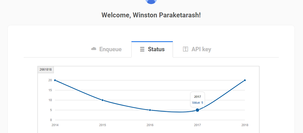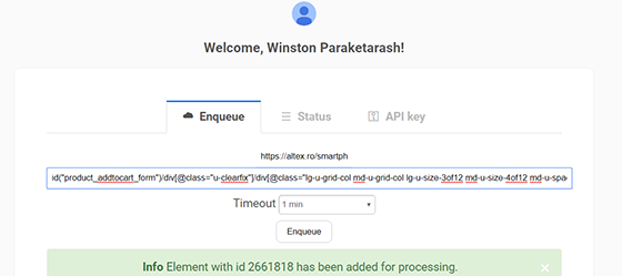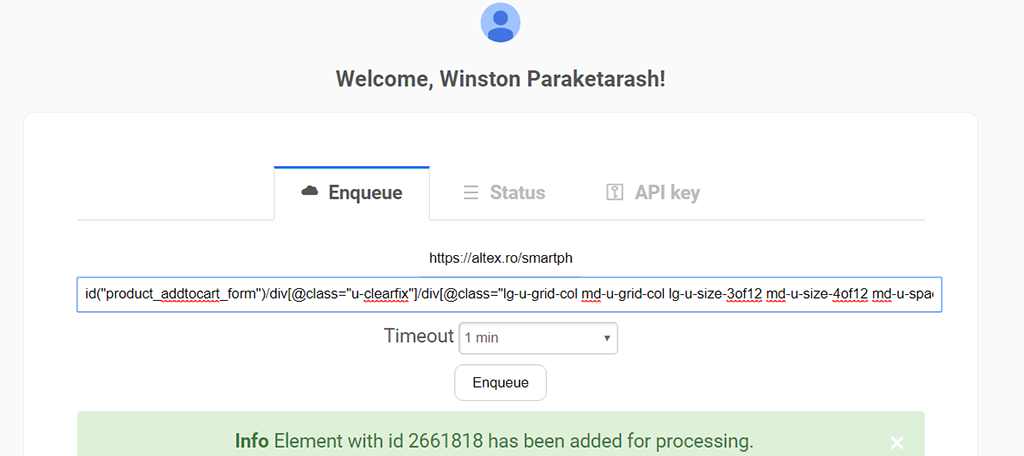 Pentru a folosi sistemul, utilizatorii se vor loga prin OAuth (ex. cu cont de Google), după care vor putea adăuga un element de test, să verifice că funcționează. În cazul în care rezultatul e satisfăcător și vor dori mai multe elemente, se pune la dispoziție posibilitatea achiziționării unui API key.